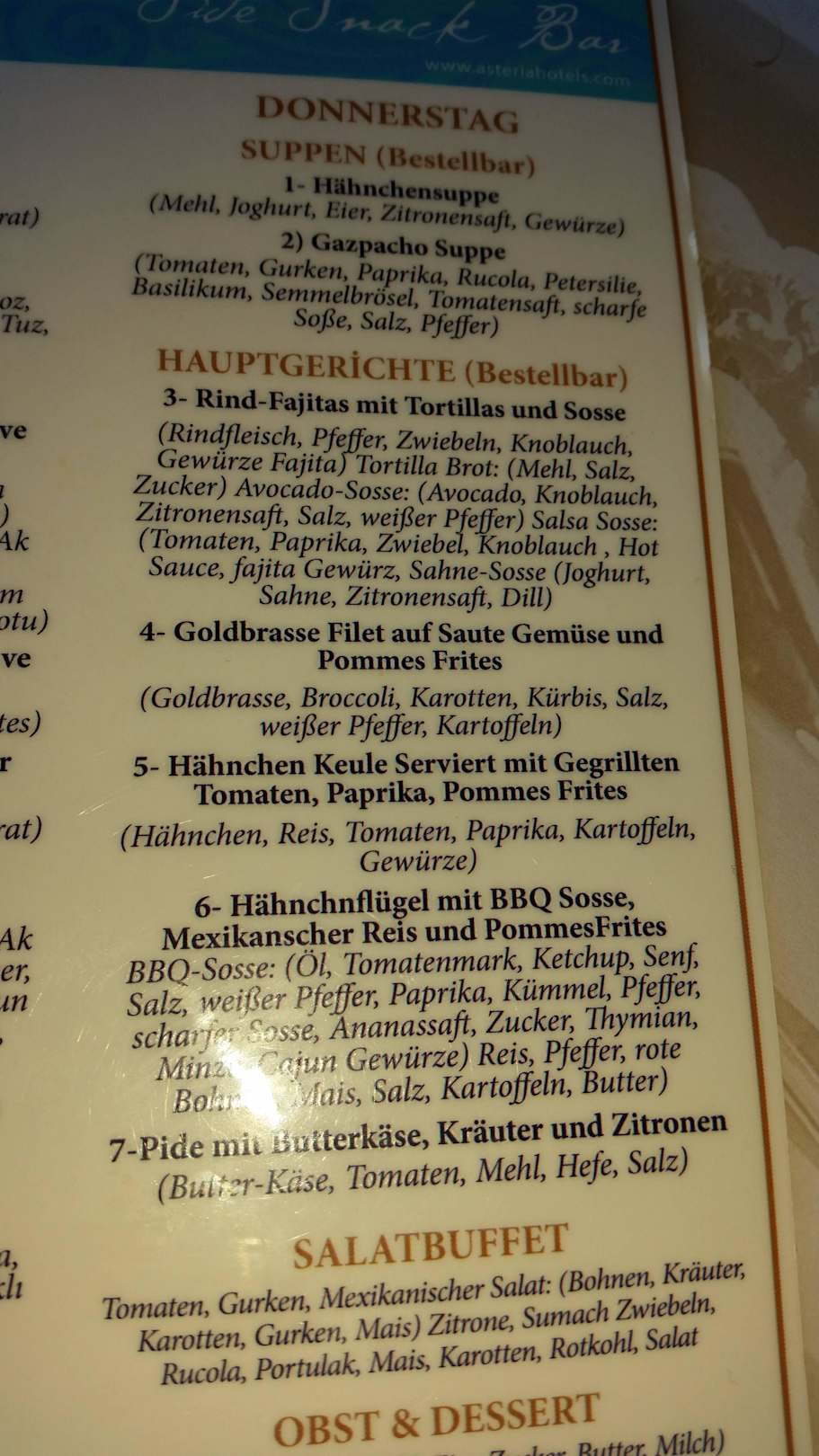 Speisekarte Sidebar mittags