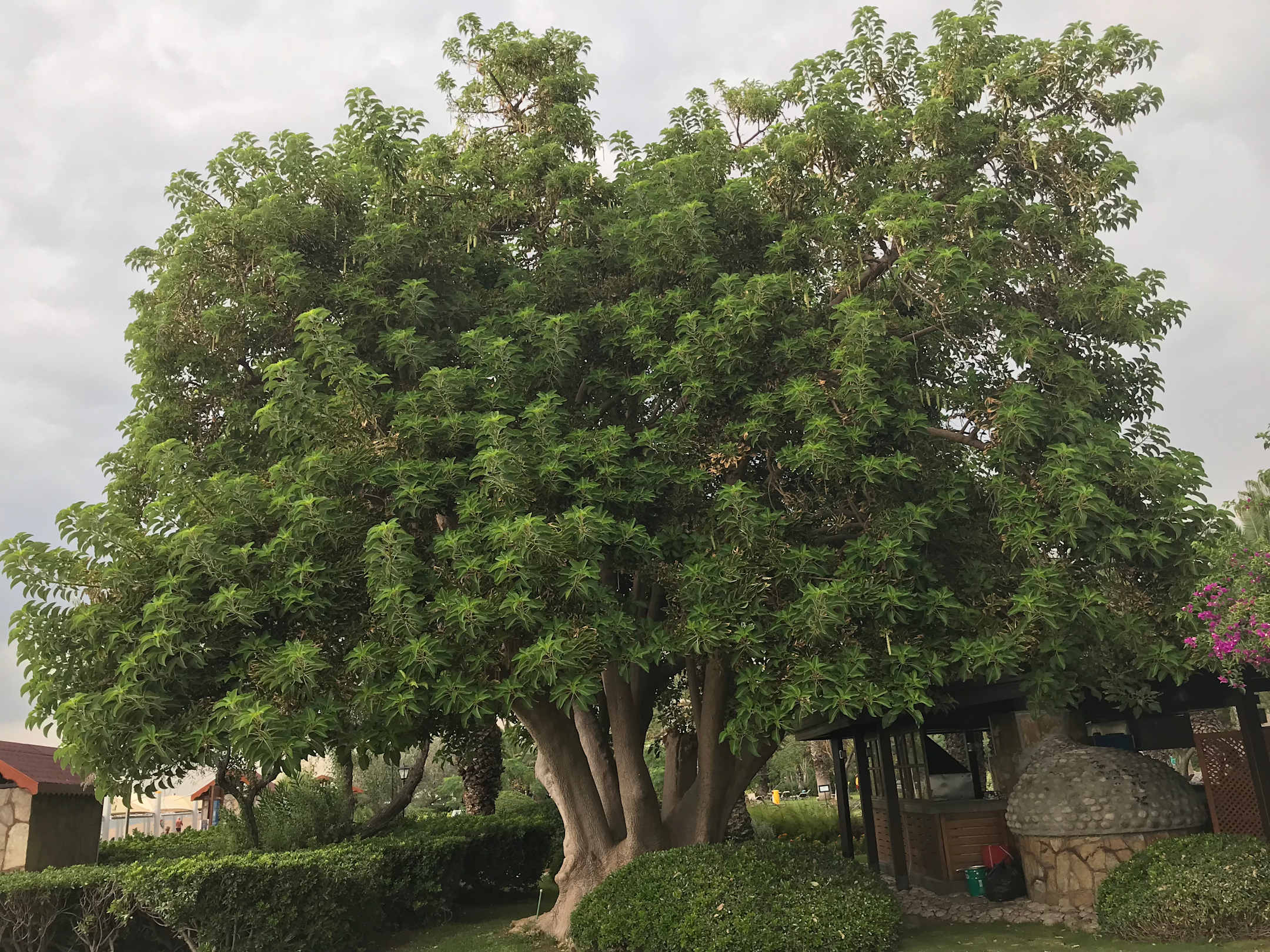 Gummibaum neben Strandgrill