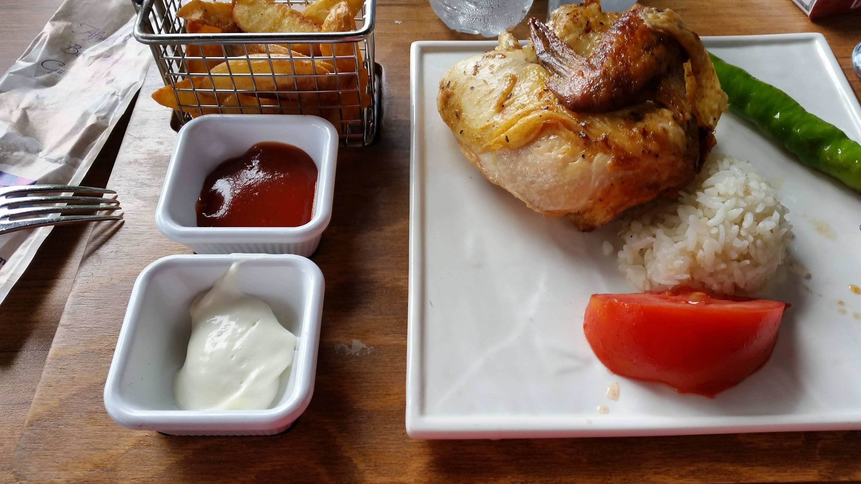 Das 1. Hähnchen in der Side Strandbar lecker!