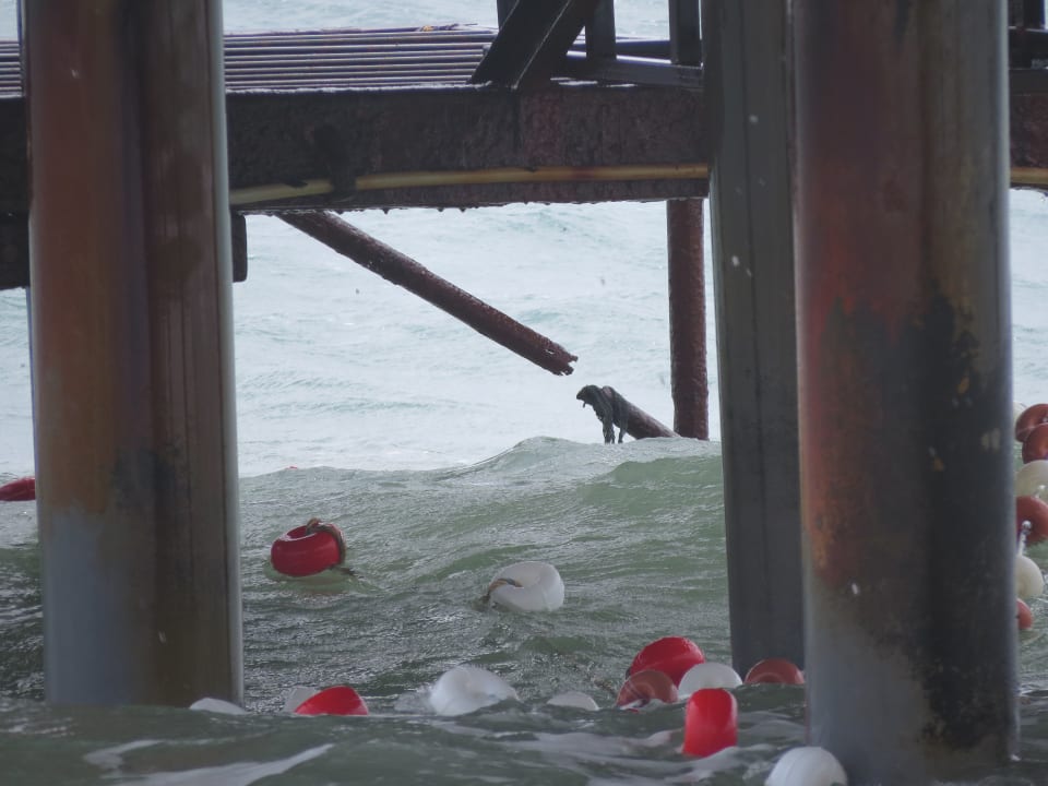 nach dem Sturm gebrochener Hauptträger vorne rechts. Steg musste gesperrt werden