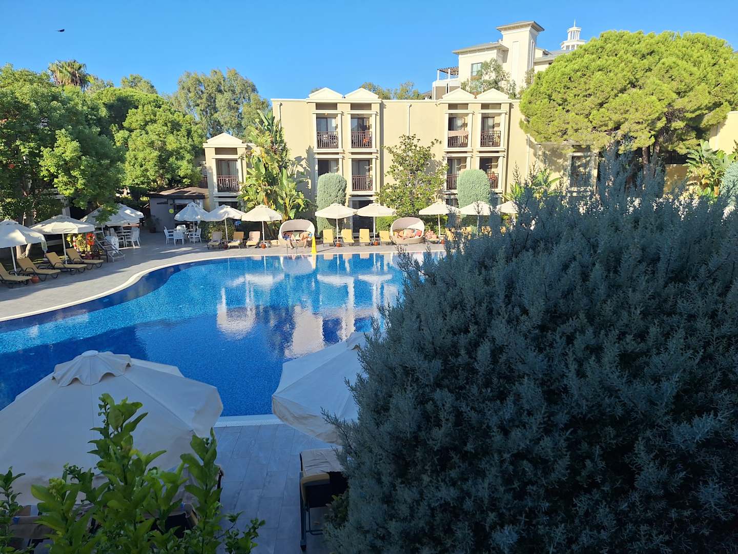 Blick von unserem Balkon (Villa 15) auf den Relaxpool.