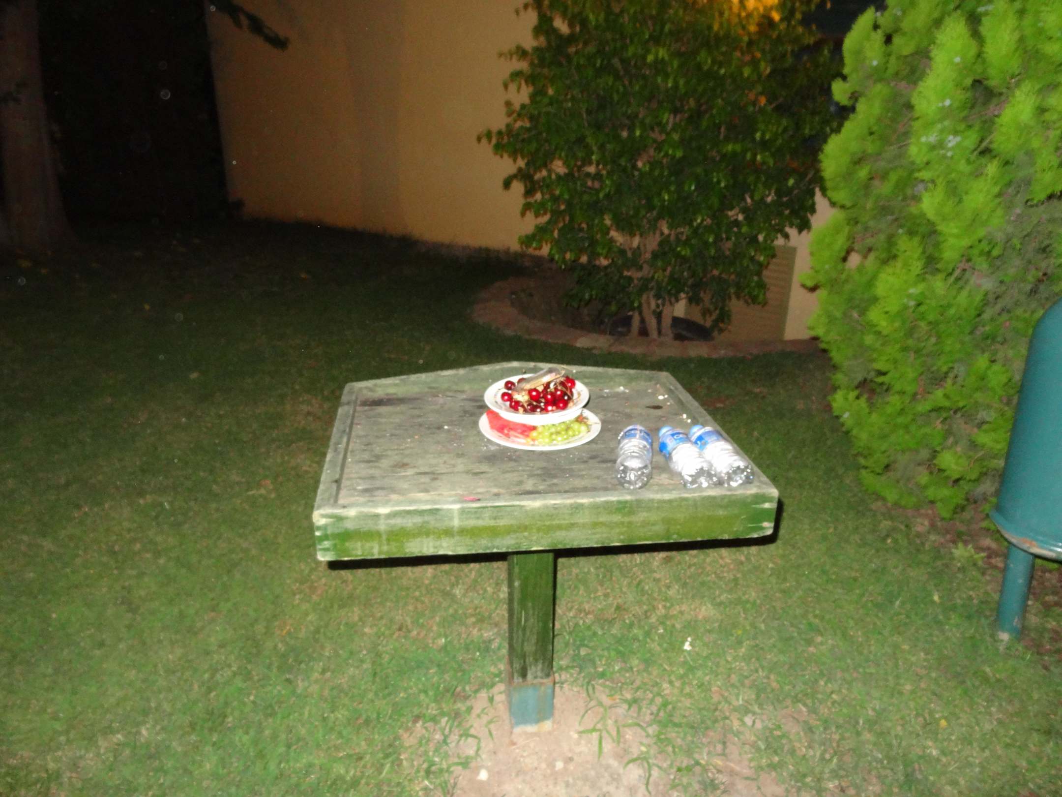Voller Obstteller sucht Mülltonne