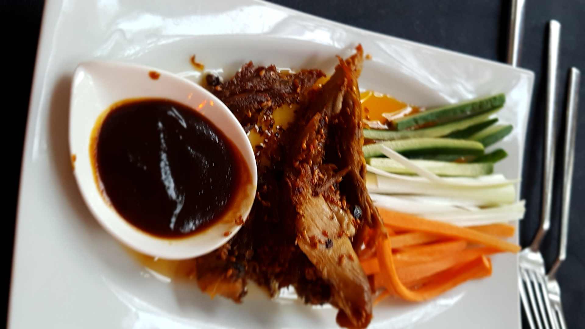 Pekingente, schön kross mit einem Pflaumendipp