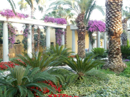 Gartenberich hinter der Rezeption
