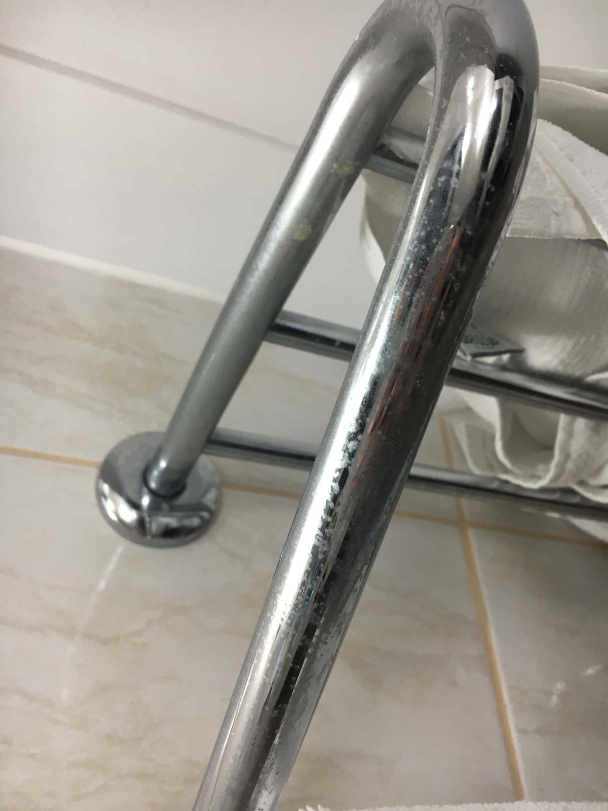 ZimmerDer Handtuchhalter in unserem Bad. Fett- und monatealte Kalkflecken. Geputzt wurde dieser scheinbar noch nie...