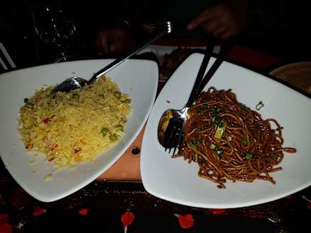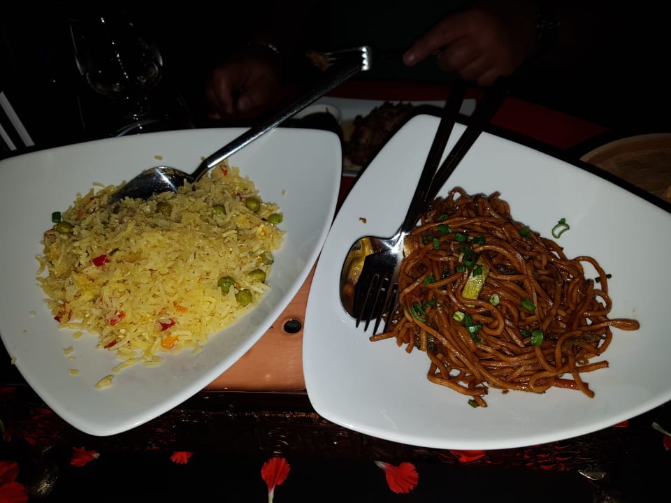 Chinese Beilagen Reis und gebratene Nudeln