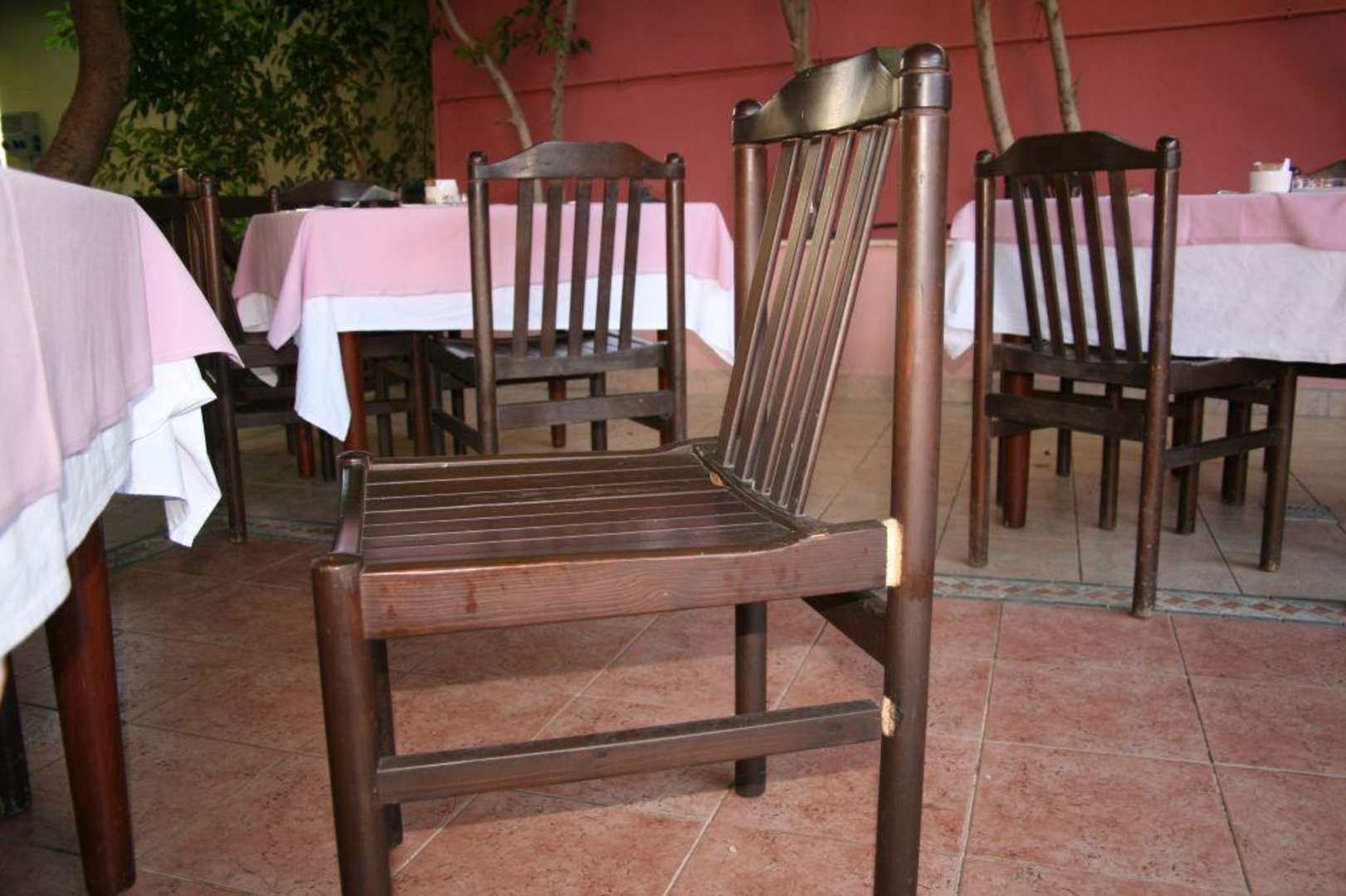 defektes Mobiliareiner von mehreren defekten Stühlen im Restaurant