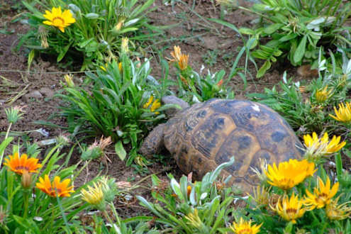 W ogrodzie spacerowało kilka żółwików co było fajną atrakcją.