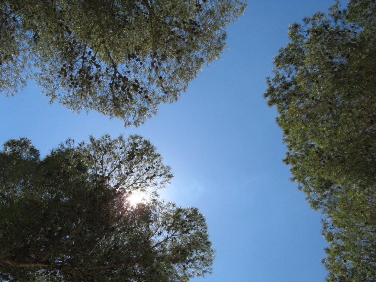 Blick von den Liegestühlen am unteren Pool gen Himmel