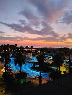 Traumhafter Sonnenuntergang am wunderschönen Pool