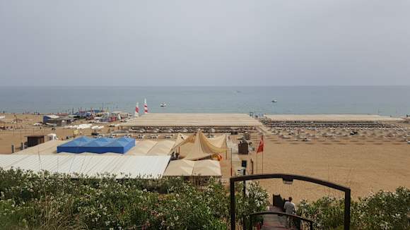 Sehr großer breiter Sandstrand mit Beach Restaurant