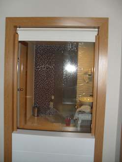 Blick vom Wohnbereich zur Toilette
