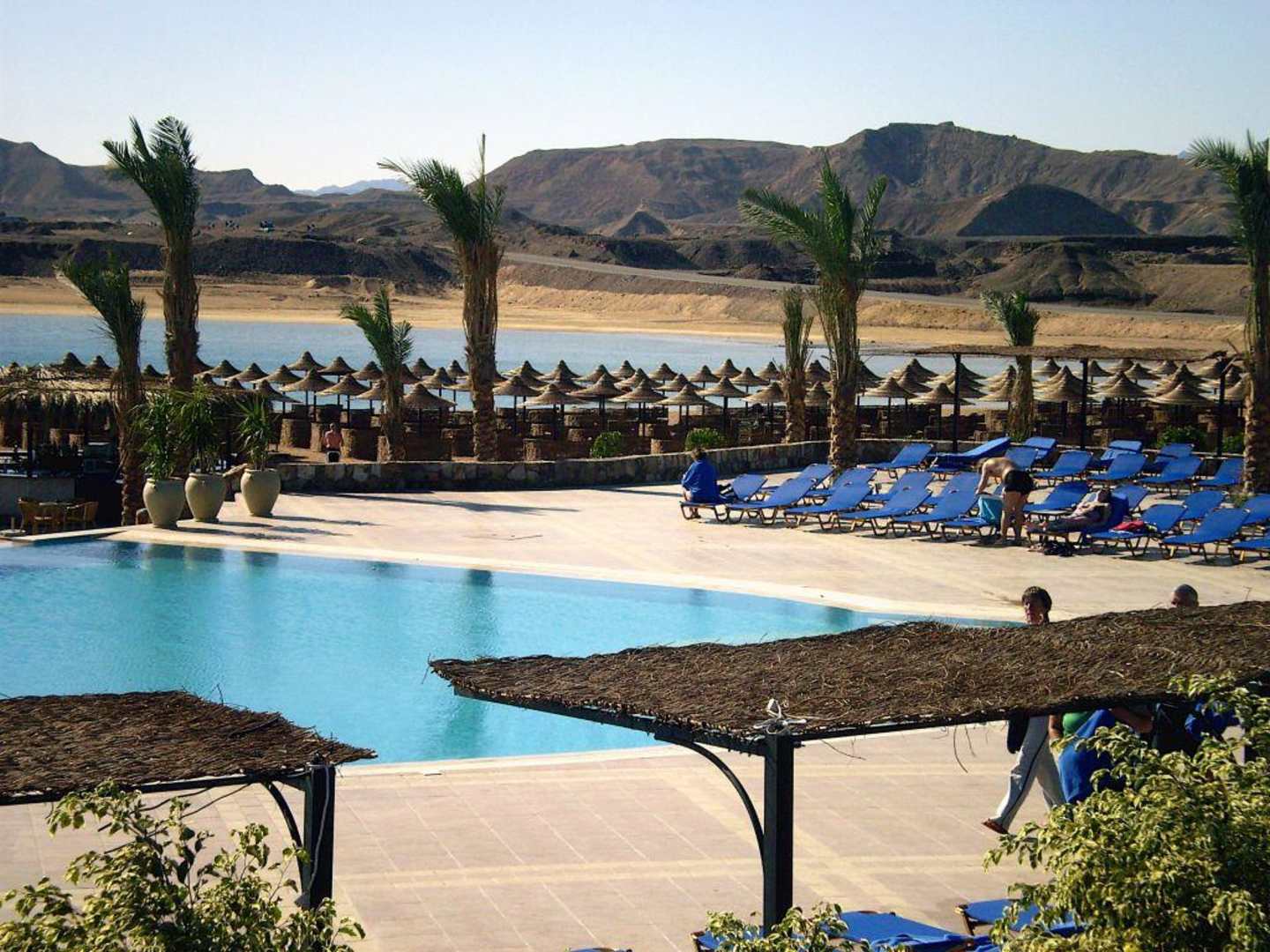 Blick auf den RelaxpoolVom Activity Pool hat man einen fantastischen Ausblick auf den Relaxpool, Strand, Meer und im Hintergrund die Wüste
