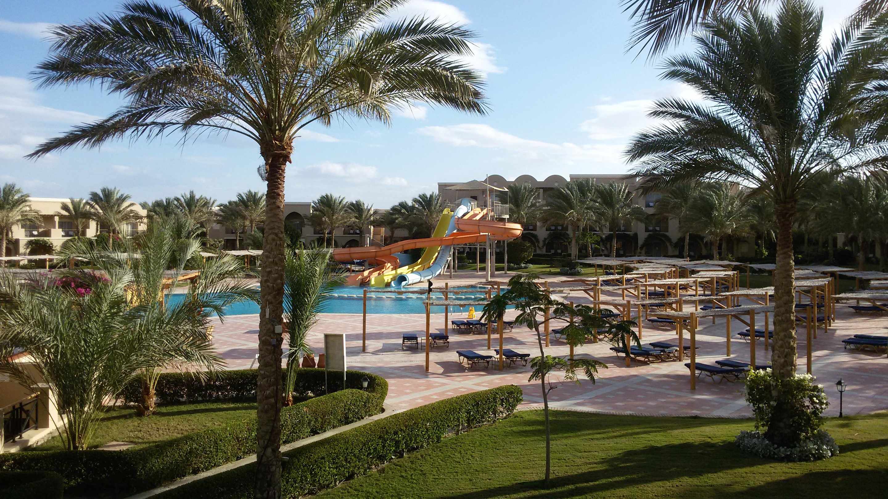 Block 19 - Blick vom Balkon auf Rutschenpool