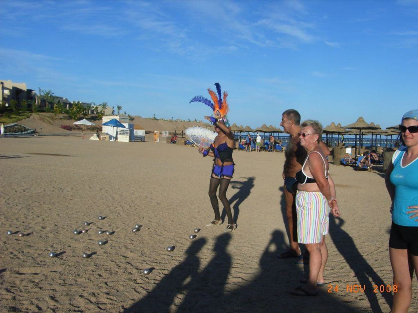 Boccia am Strand des Magic Life Kalawy Imperial mit Animateur Koral "Hans-Peter" in einer seiner vielen Verkleidungen als Tunte.