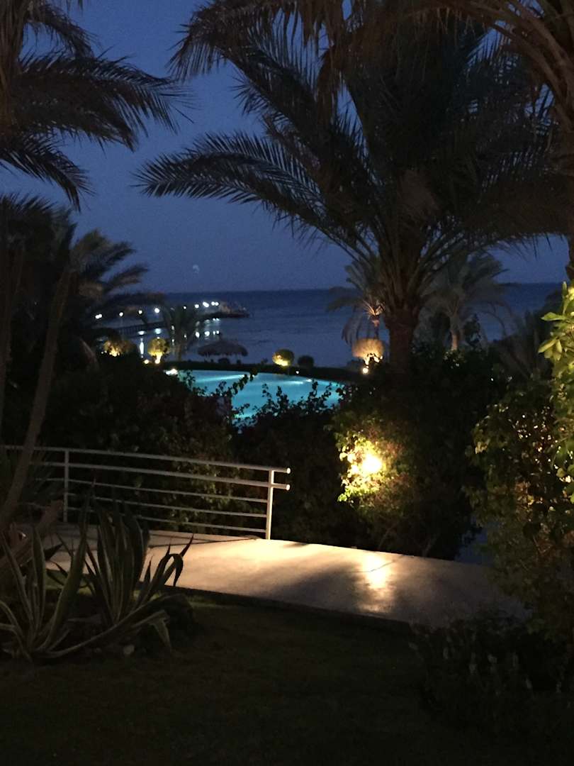 Abendlicher Blick vom Speisesaal zum Meer