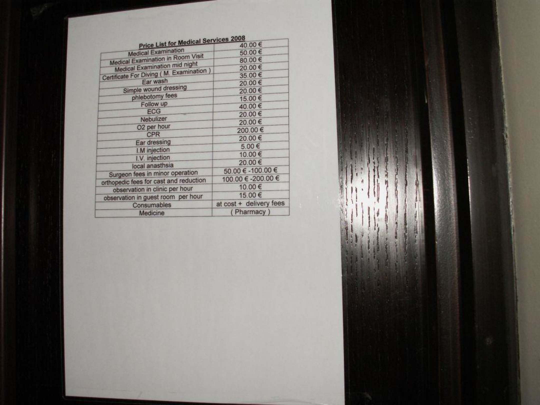 Preisliste des Arztes