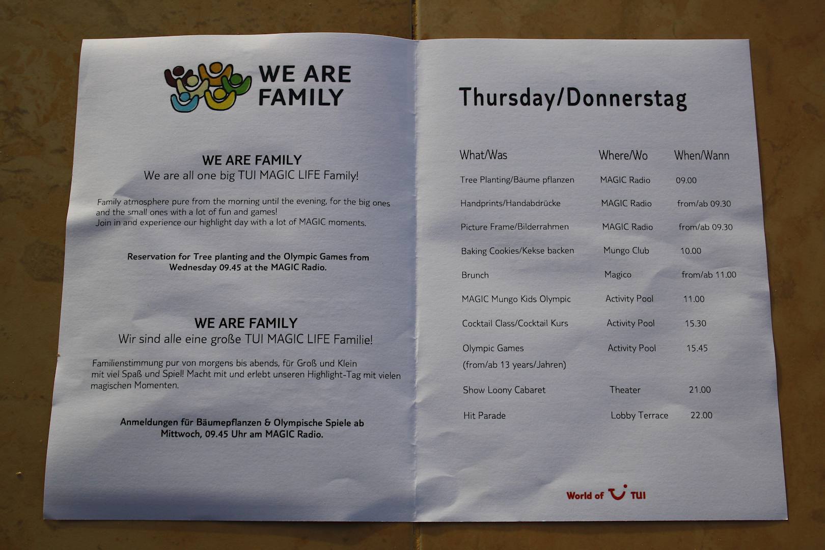 Programm des "We Are Family" - Tages