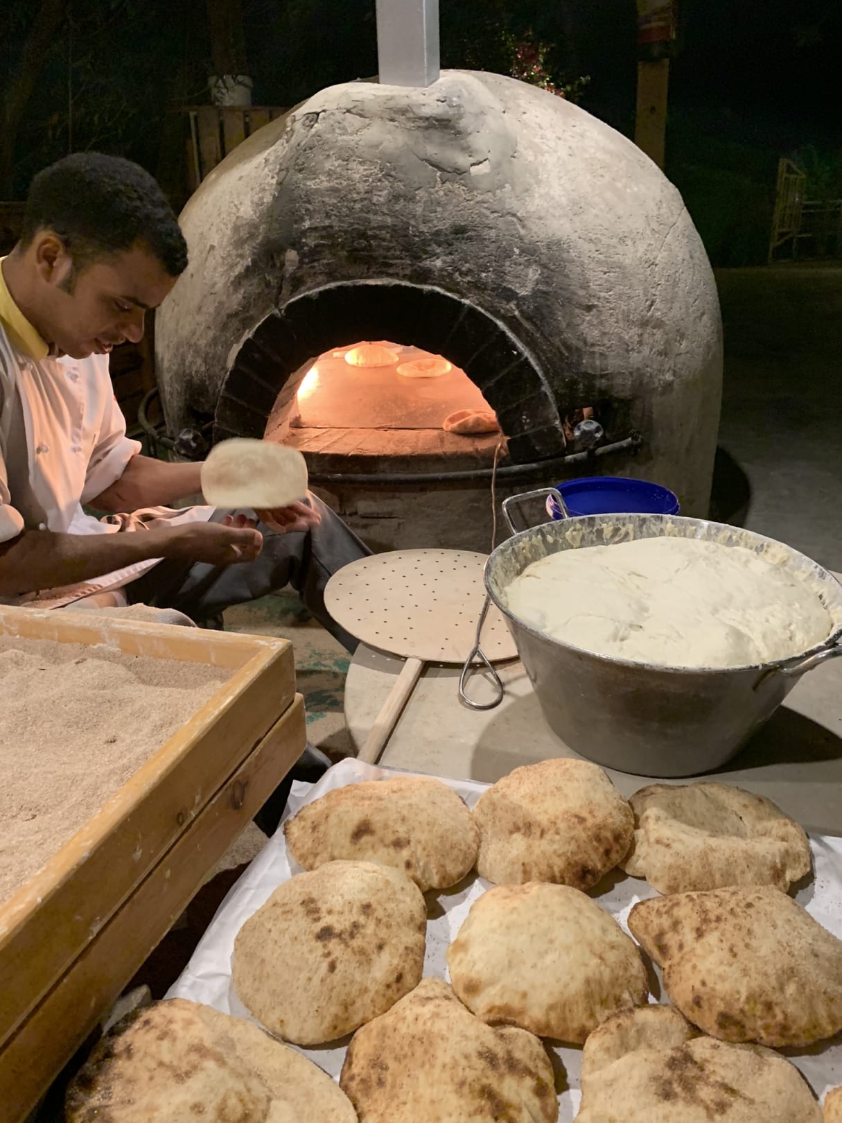 Fladenbrotbäckerei am Abend beim Mainrestaurant