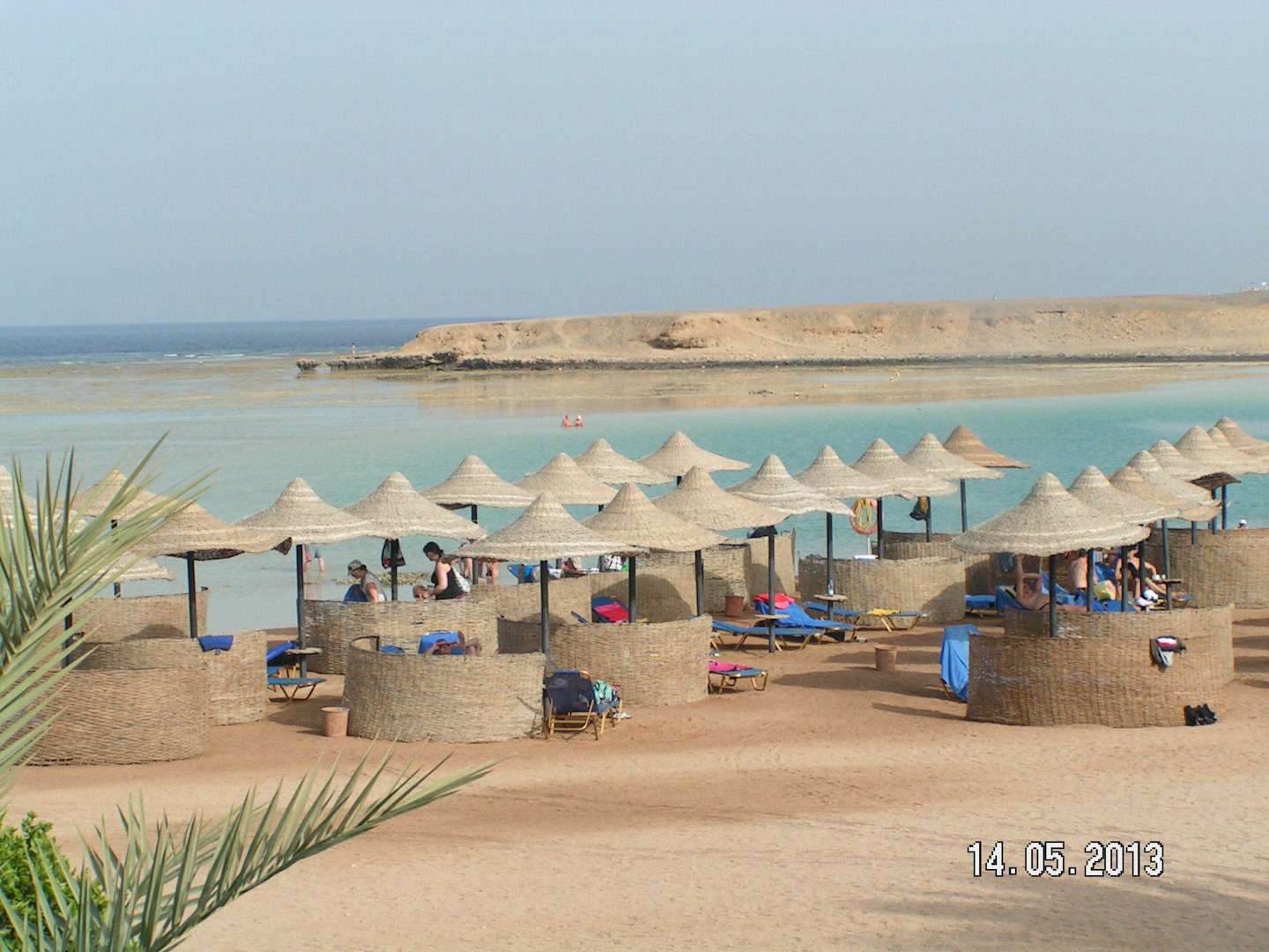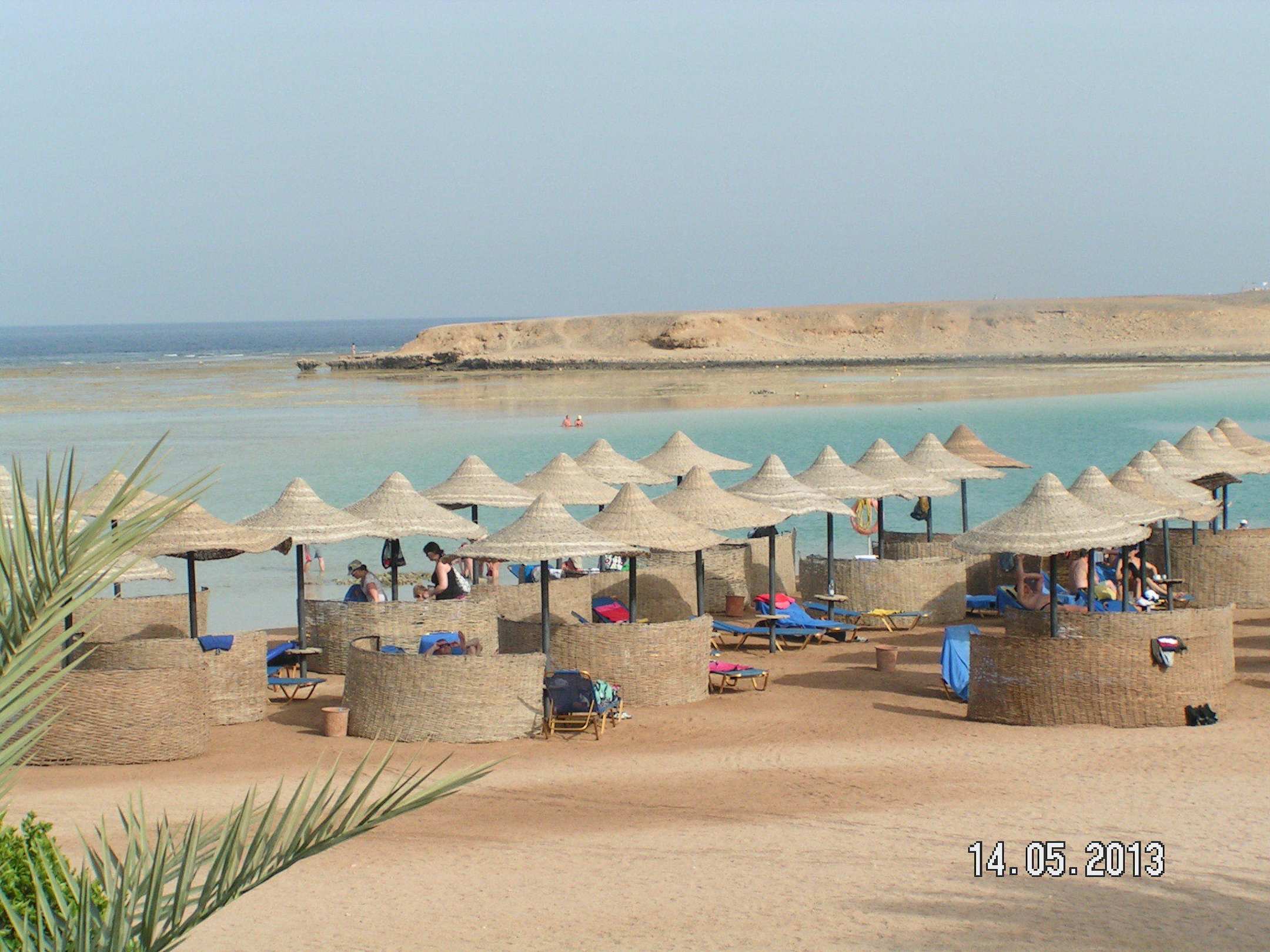 Strand mit Sonnenschutz an der Lagune