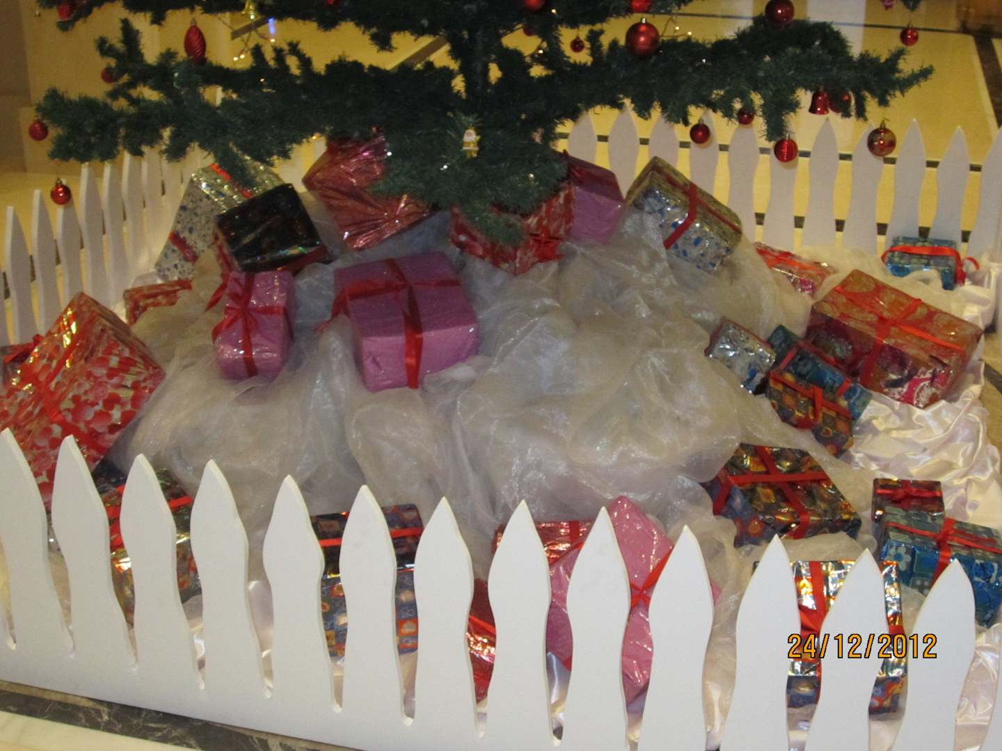Weihnachtsdekoration bei der Rezeption