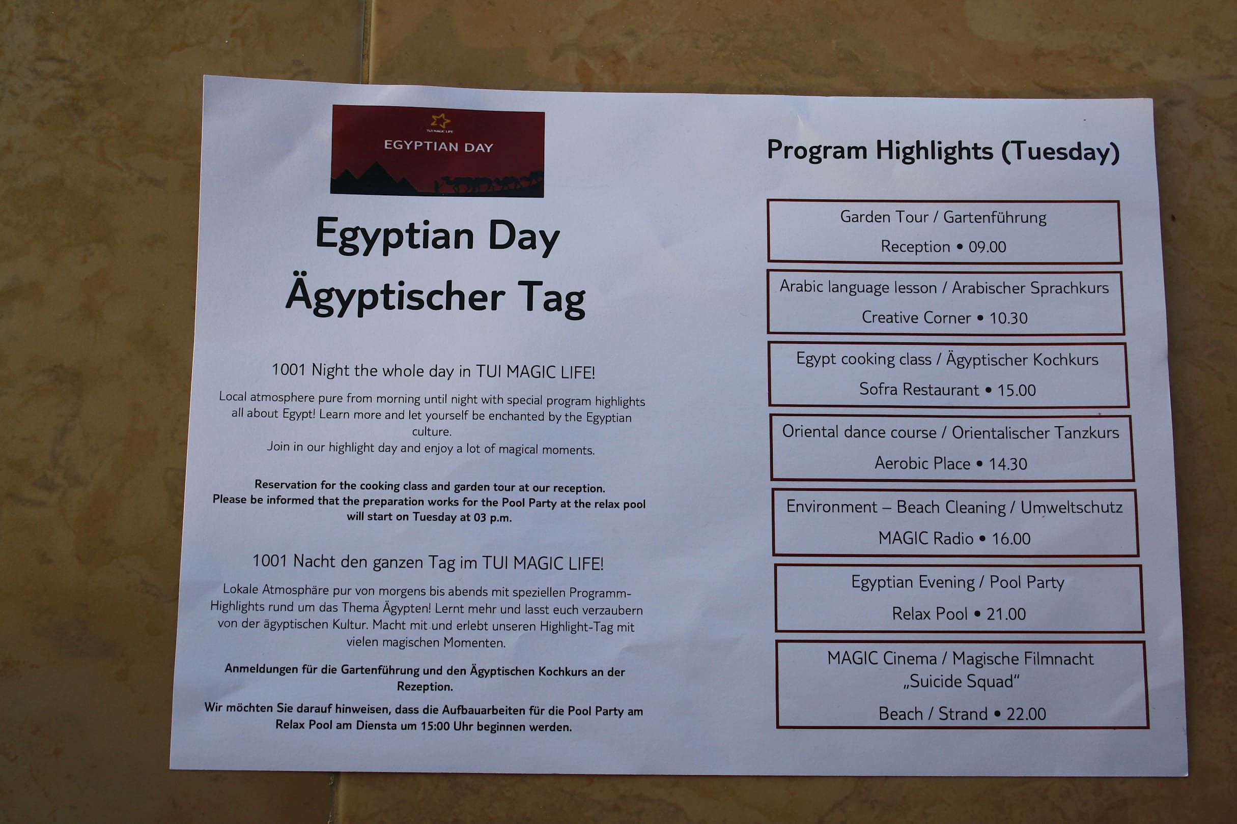 Programm "Ägyptischer Tag"