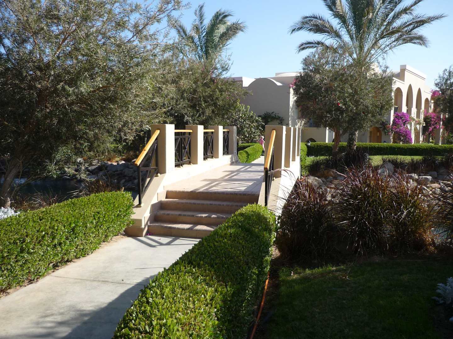 Brücke die über den Teich zwischen den Zimmern