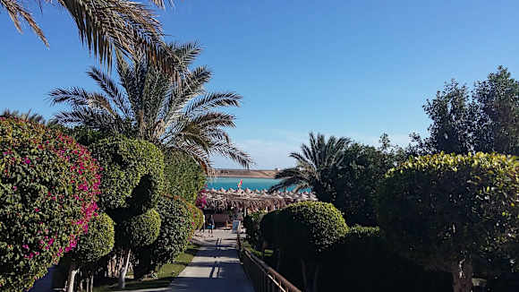 Ausblick vom Hauptrestaurant auf Lagune