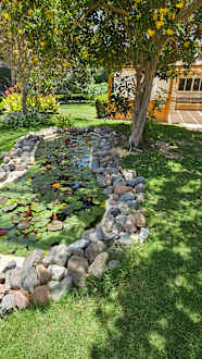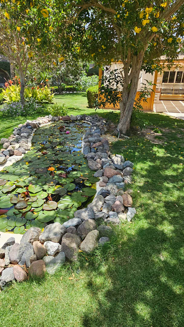 Teich vor dem Coffee House, dort werden am Nachmittag Kuchen serviert.