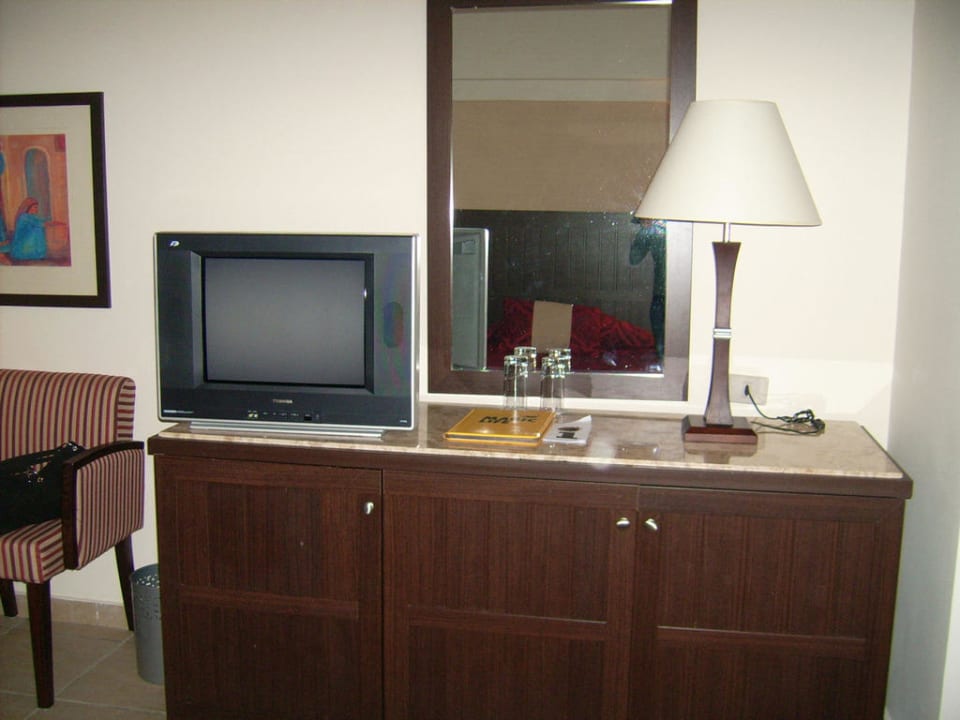 Blick auf Fernseher und Kommode