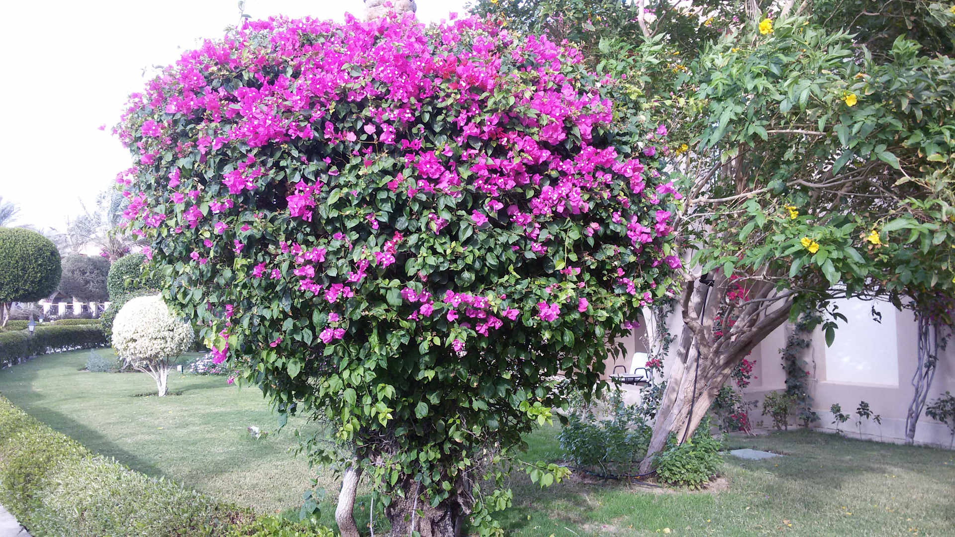 Blühende Bougainvillea in der ganzen Anlage