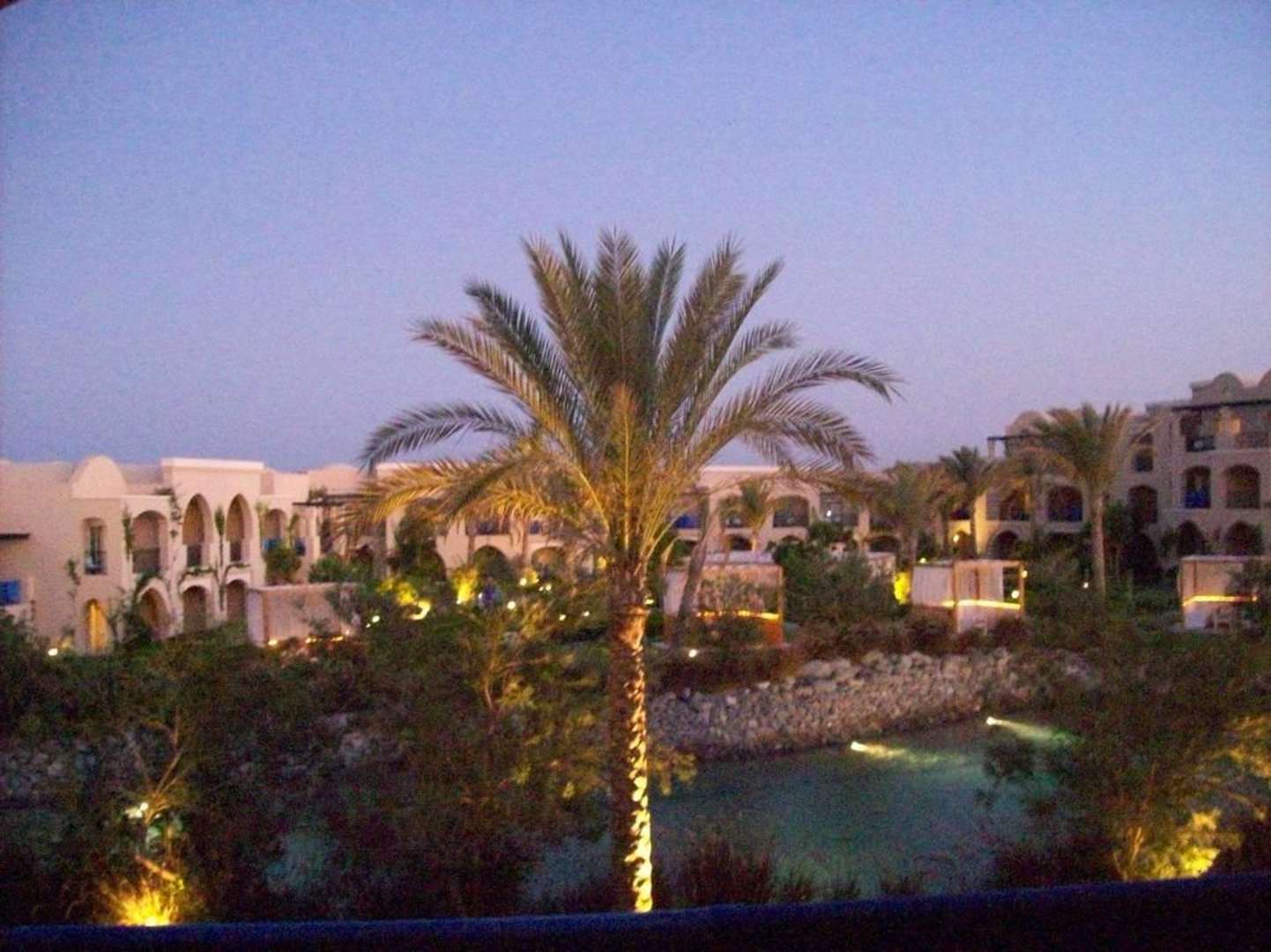Vor unserem Zimmer war ein kleiner Teich angelegt, sehr hübsch anzusehen, aufgenommen in der Abenddämmerung
