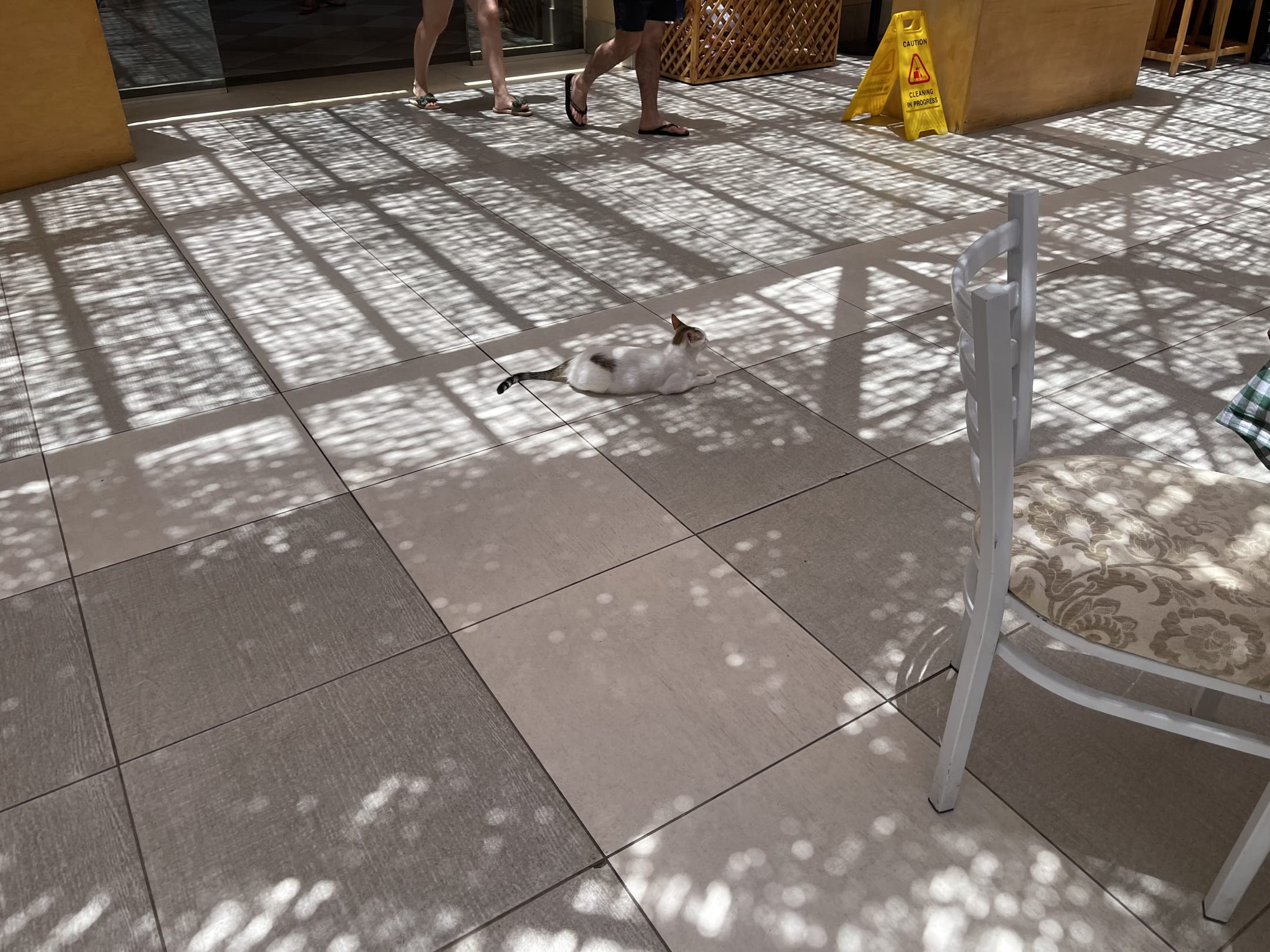 Katze liegt mitten im Restaurant