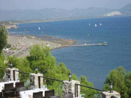 Blick vom Seno auf den Hotelstrand und die Bucht
