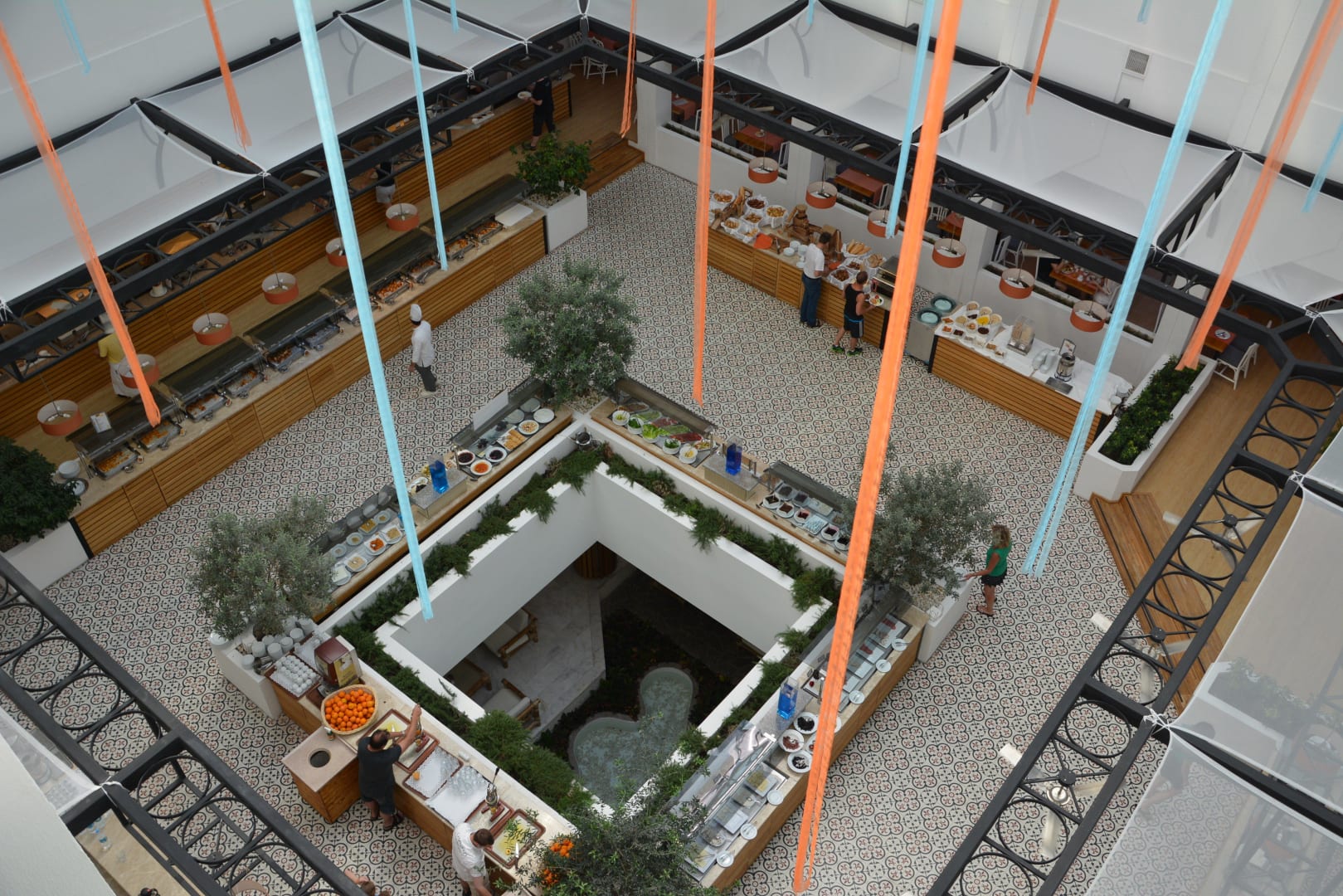 Das Frühstücksbuffet von oben aufgenommen