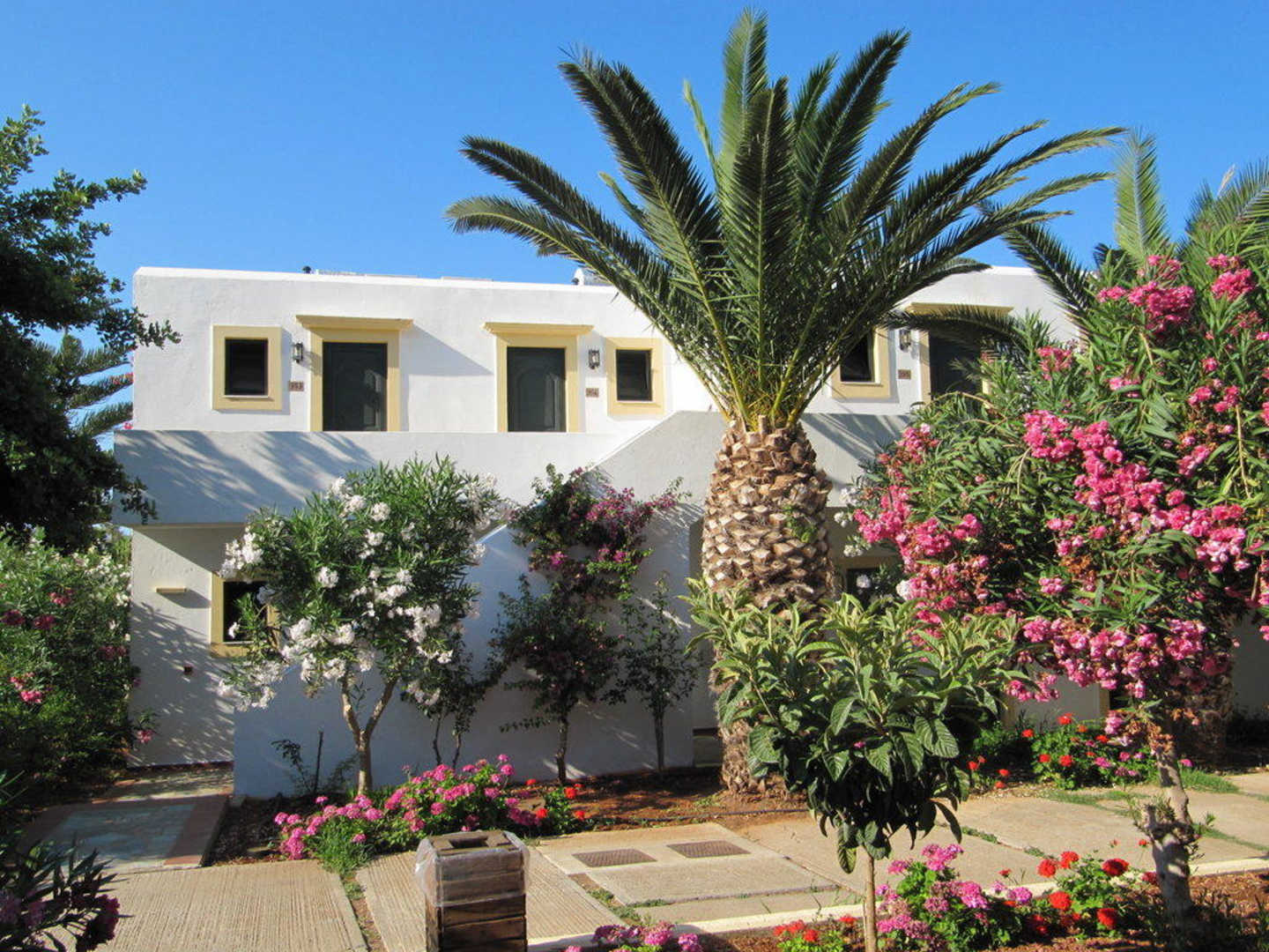 Ein Bungalow von außenDas Hotel Chrissi Amoudia hat viele Gepflegte Bungalows.