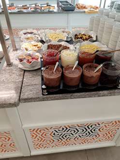 Frühstück: Nutella, Erdbeer-, Marillen-, Waldbeermarmelade, Vanillecreme, Müsli