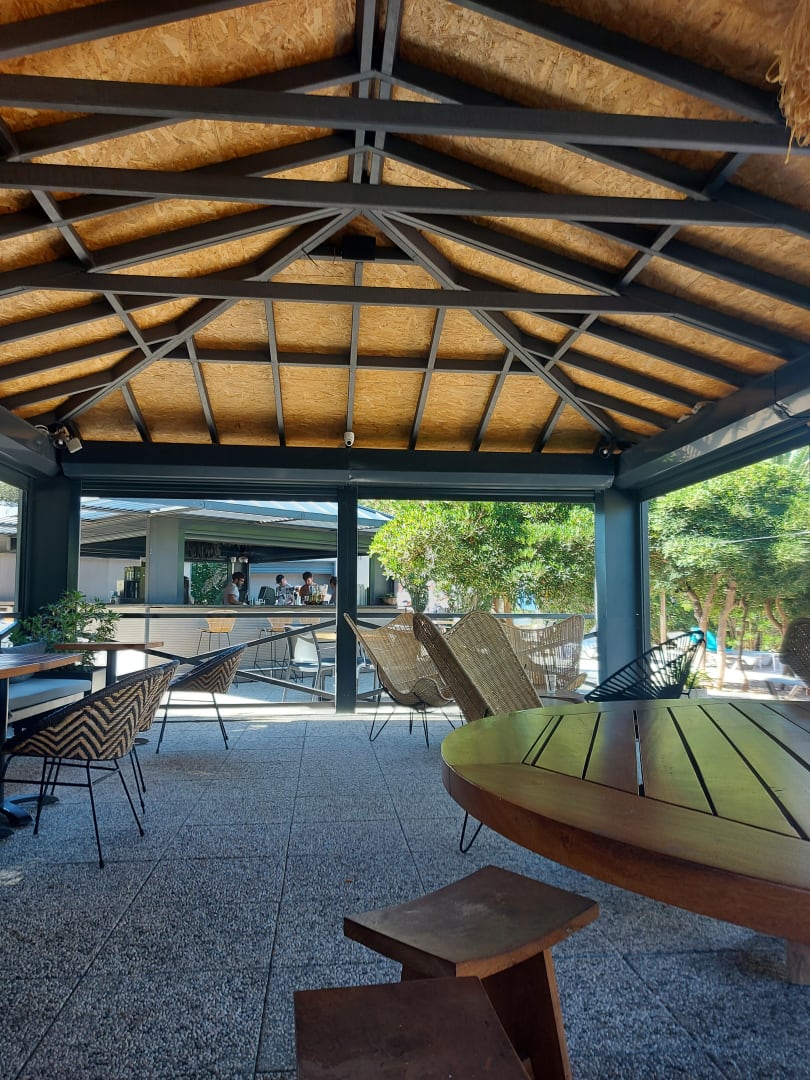 Im Hintergrund die Poolbar