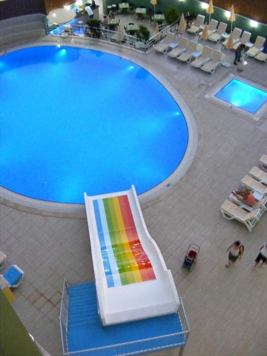 Die Poolanlage kurz vor Sonnenuntergang