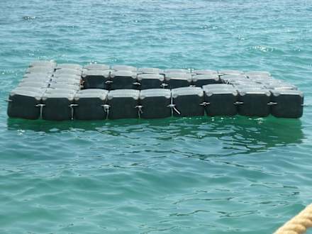 Die Badeinsel ist ohne Leiter und nur sehr schwer zu besteigen.