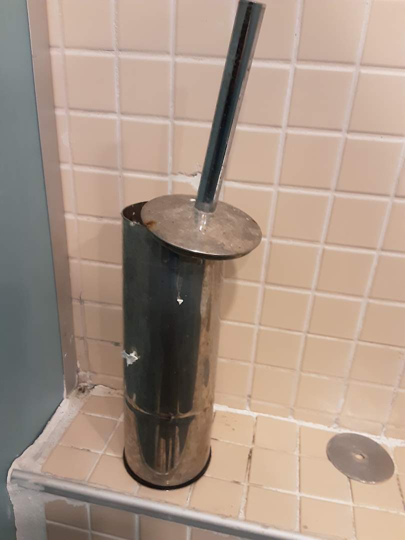 Toilettenbürste mit Halter in der Strandtoilette.