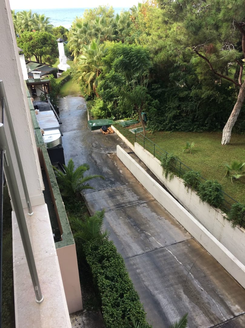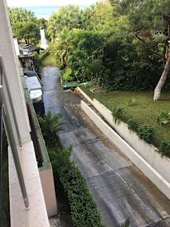 Blick vom Balkon des Delux-Zimmer auf die Liefereinfahrt.