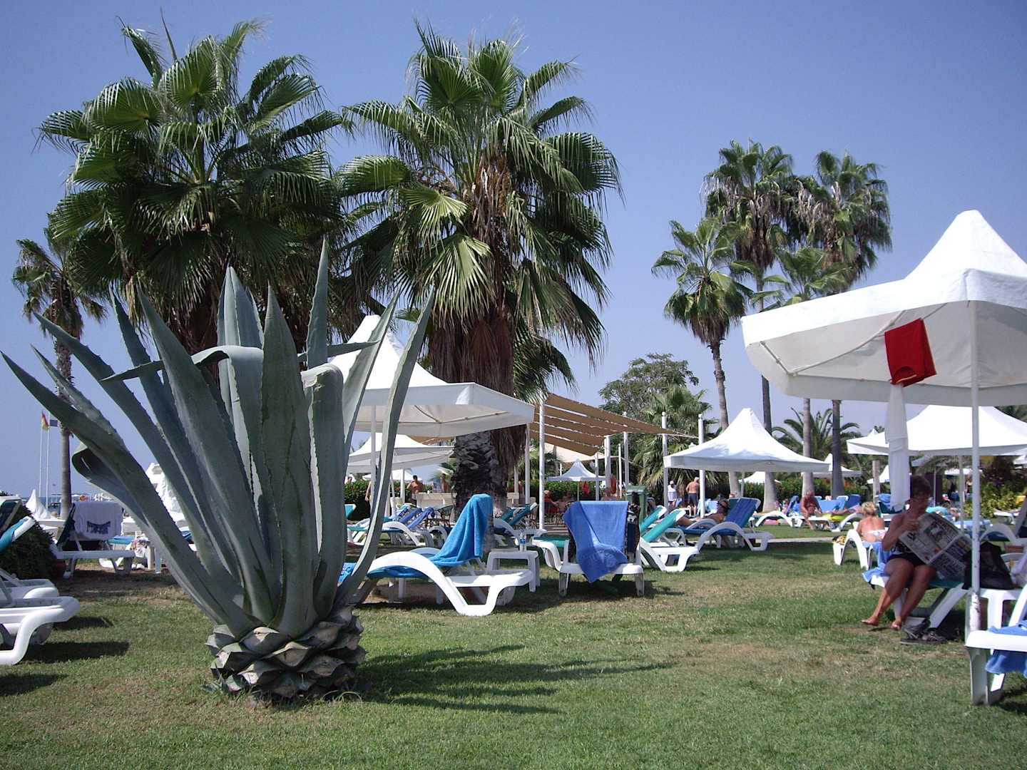 Viel Liegeflächen zwischen Pool und Strandes sind viele Rasenflächen zur freien Nutzung vorhanden
