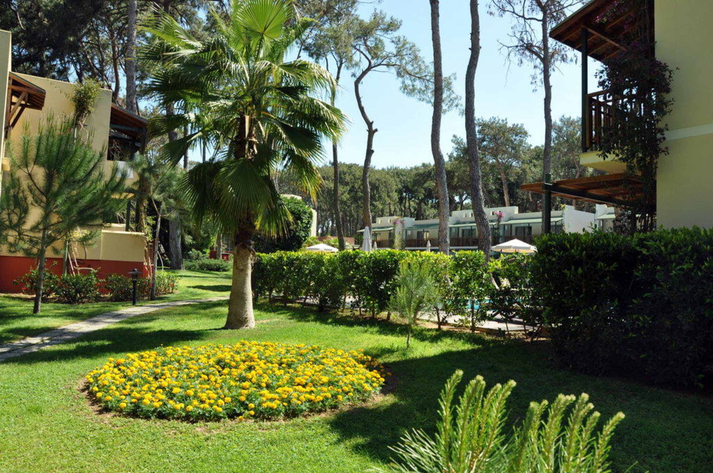 Blick vom Haupthaus in den Garten der Fam.villen