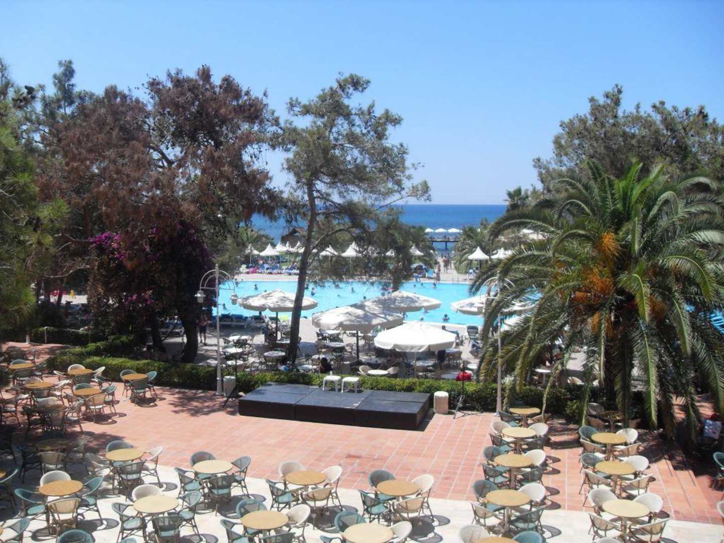 Blick auf die Bar, Pool und das Meer