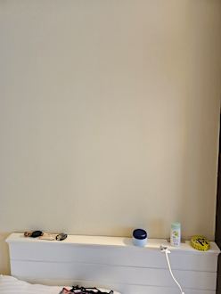 das Einzelbett. Das Kopfteil als Ablagefläche benutzt.