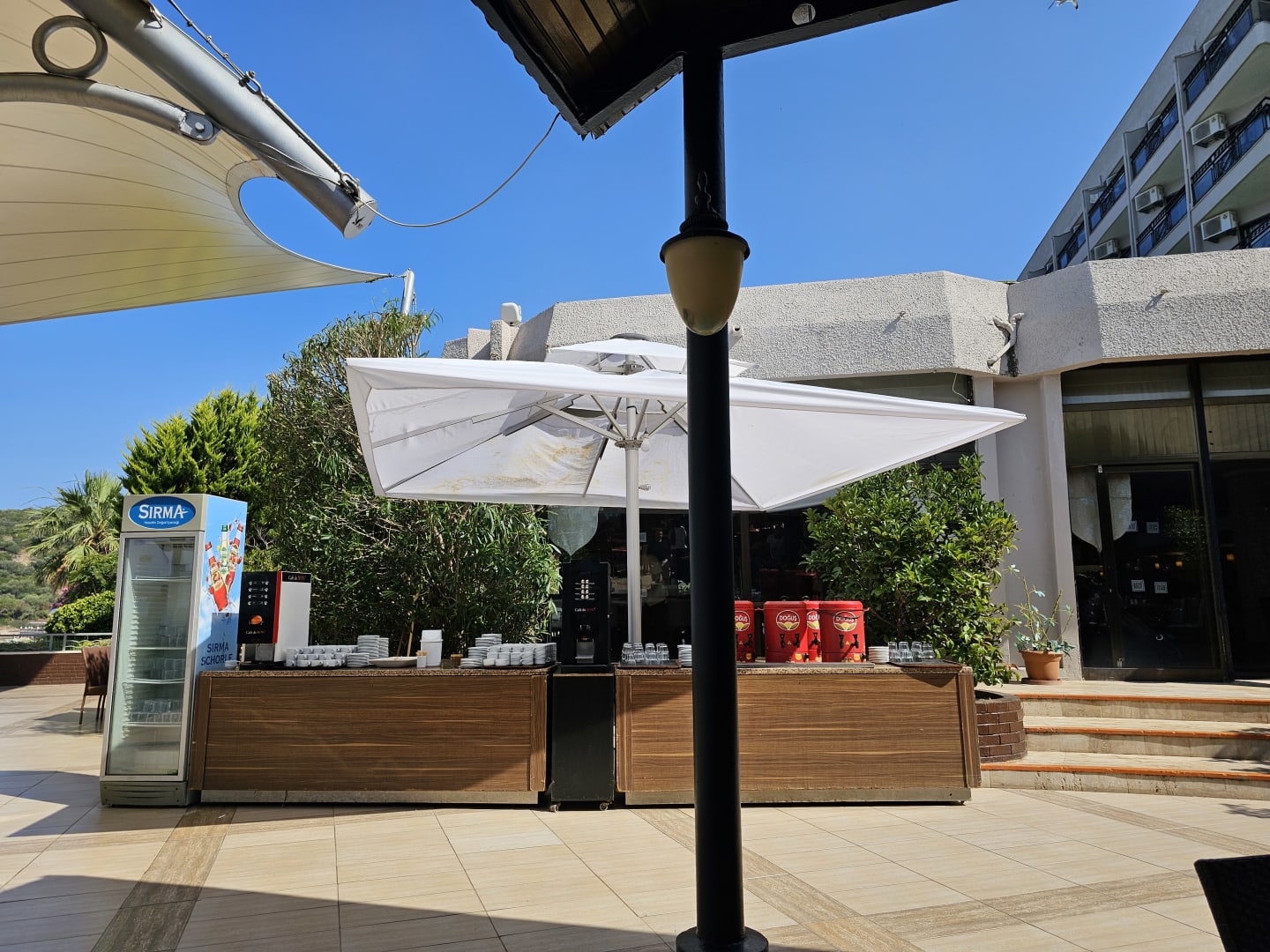 Frühstückszeit, Terrasse im Hauptrestaurant.