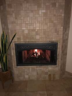 offener Kamin drinnen und draußen