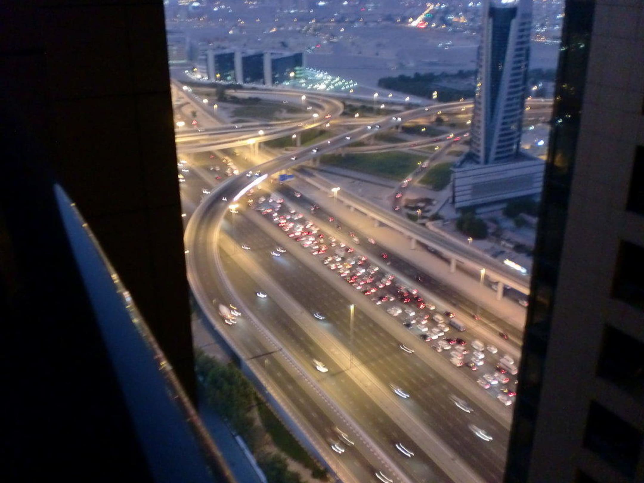 Aus dem 37. Stockauf die 12 Spurige Strasse. Sehr kurzweilig!