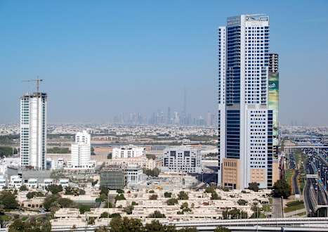 Ausblick auf Dubai-City-InnenstadtDie Innenstadt ist nur 15 km entfernt, auch bei klarem Wetter verschwindet sie in einem Dunstschleier. Wir konnten Sie einmal klar sehen, das war nacheinem Regentag (nur 5 im Jahr!), der den Feinstaub aus der Luft gewaschen hat.